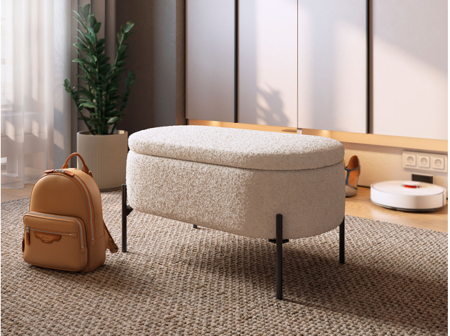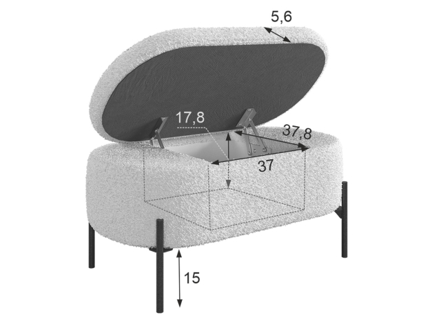 Пуфик Барни станет привлекательным и одновременно практичным элементом интерьера. Удобное сиденье делает модель идеальным местом для отдыха, а небольшой ящик внутри обеспечивает удобное хранение различных мелочей. Высокие ножки упрощают процесс уборки и придают пуфику визуальную легкость.