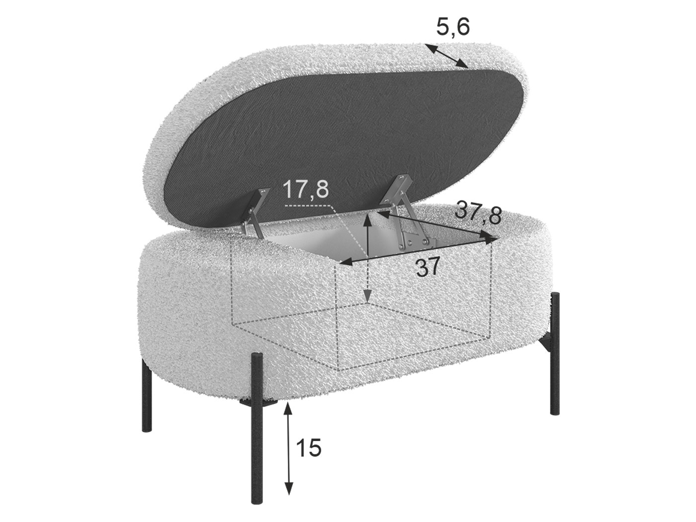 - Высота ножек: 15 см.