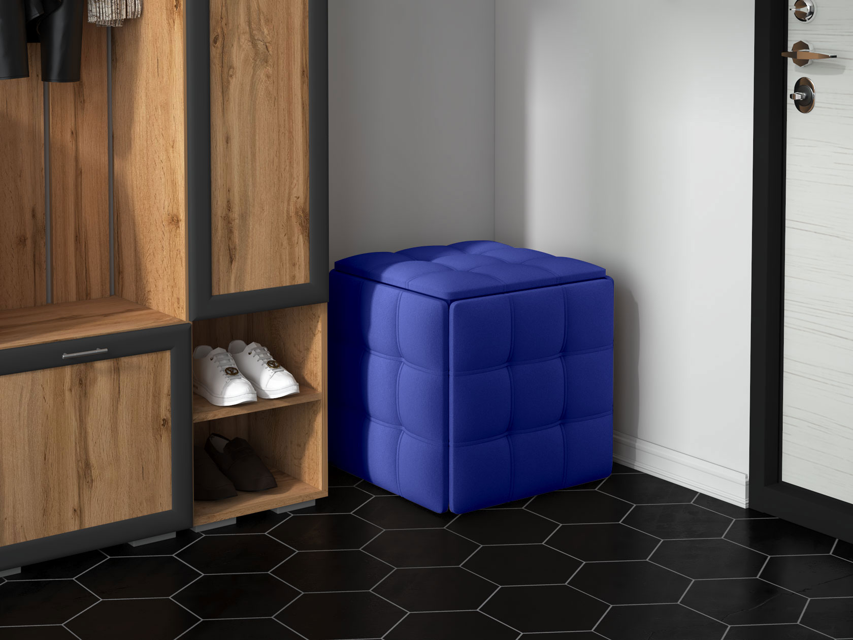 Отличный пуф. Можно компактно сложить 5 табуретов.