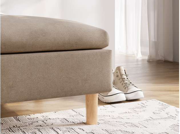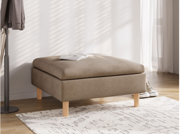 Пуфик Калисто — визуально легкая модель в минималистичном дизайне. Идеальные пропорции и лаконичный силуэт делают пуф органичным дополнением к любому интерьеру. Высокие деревянные ножки добавляют уютный акцент и облегчают уборку. Пуф удобно использовать в качестве подставки для ног, дополнительного посадочного места или в роли банкетки. Модель можно комбинировать с другими элементами коллекции.