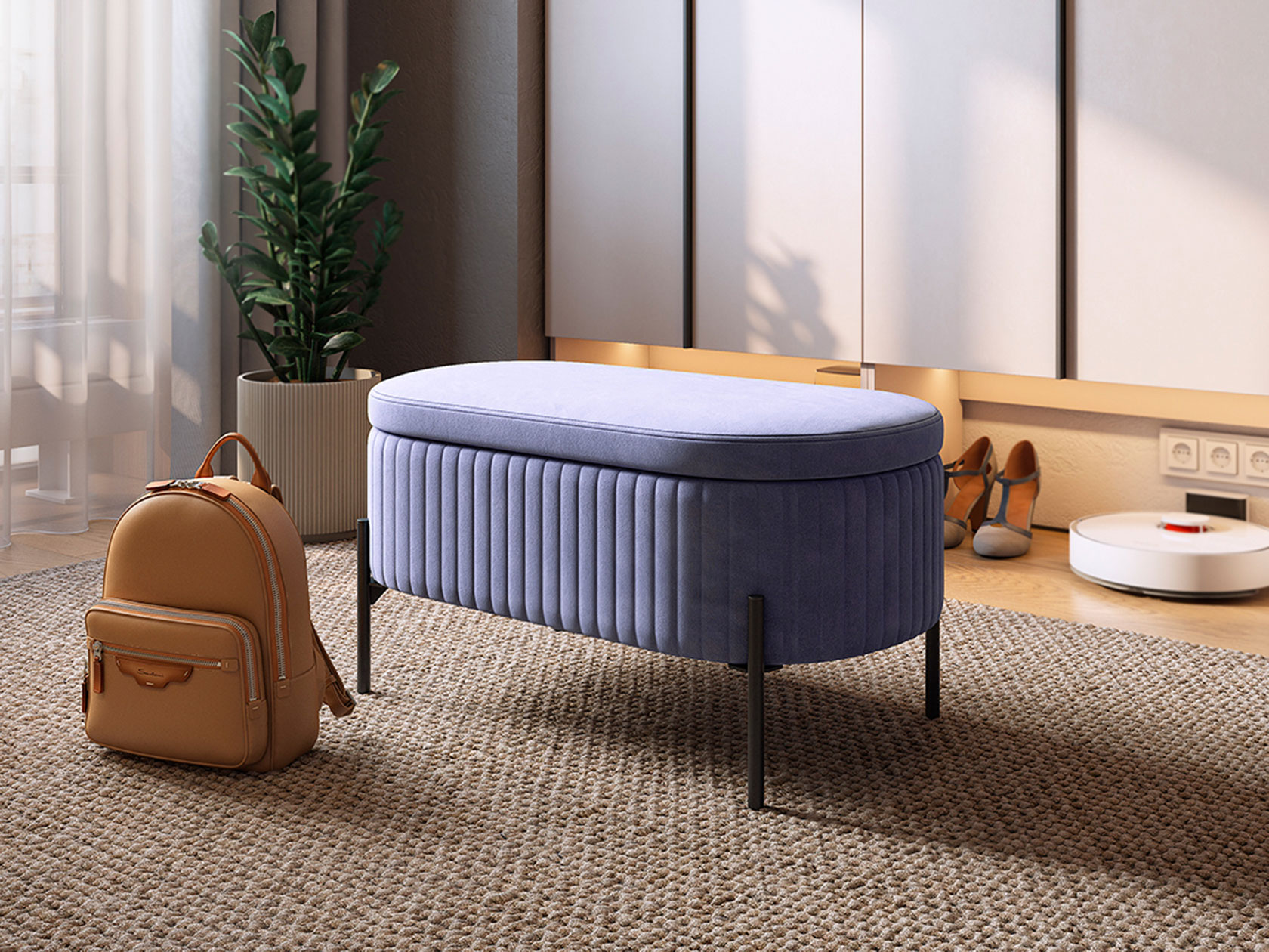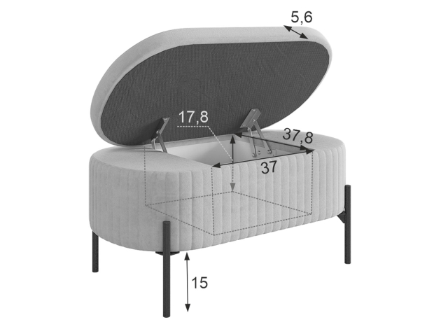 Пуфик Винни Биг станет ярким акцентом интерьера любой комнаты. На него удобно присесть, чтобы сменить обувь, а еще модель можно использовать как дополнительное посадочное место. Пуф украшен декоративным оборками и высокими ножками. Под мягким сиденьем есть удобный ящик для хранения полезных мелочей.