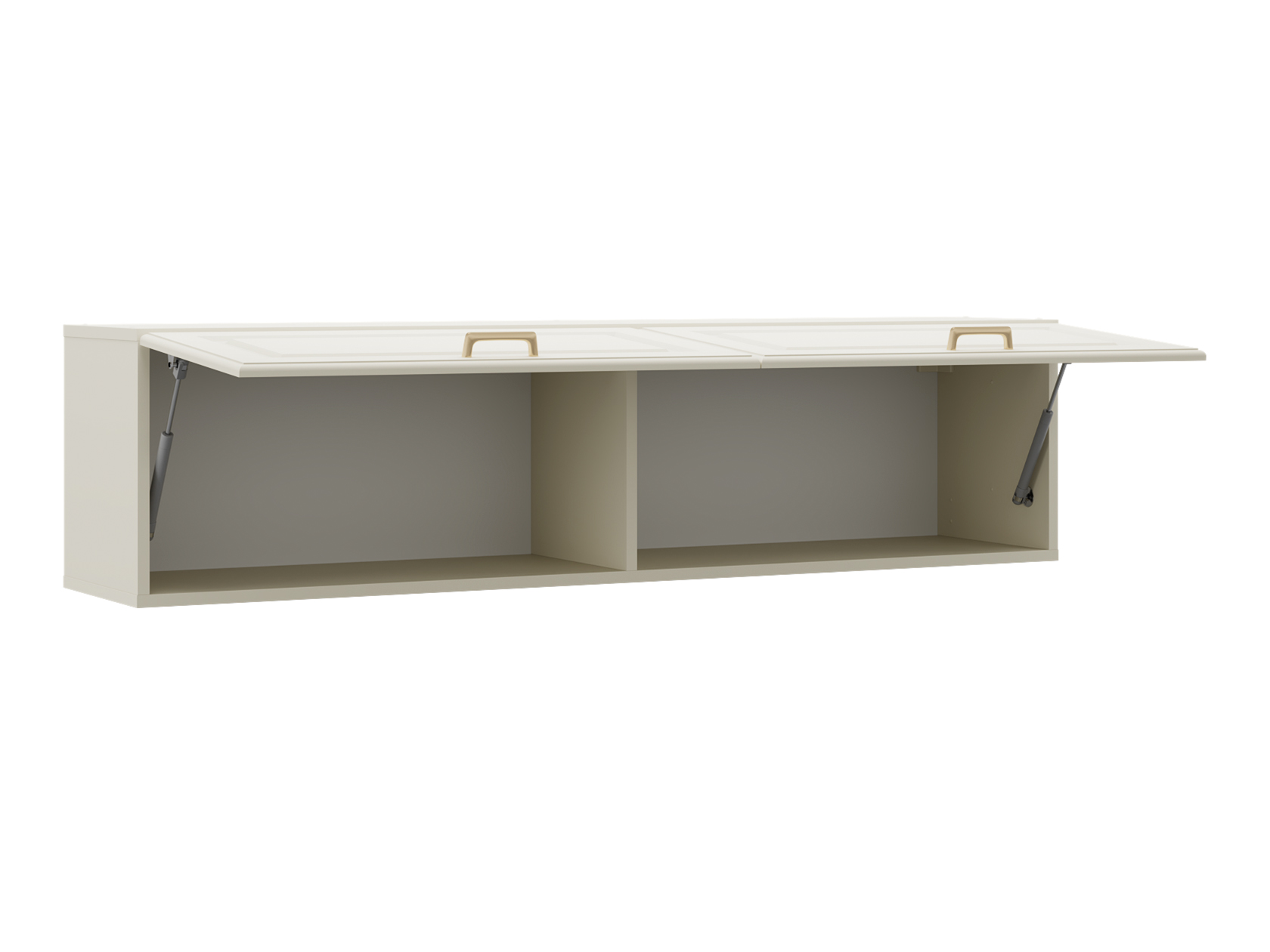 Навесной шкаф Лорето создаст удобное место для хранения книг, декора или посуды для особых случаев. Откидные дверцы оснащены механизмом, который позволяет фиксировать створки в открытом положении. Фасады с рамочной фрезеровкой уместно смотрятся как в классическом, так и современном интерьере.