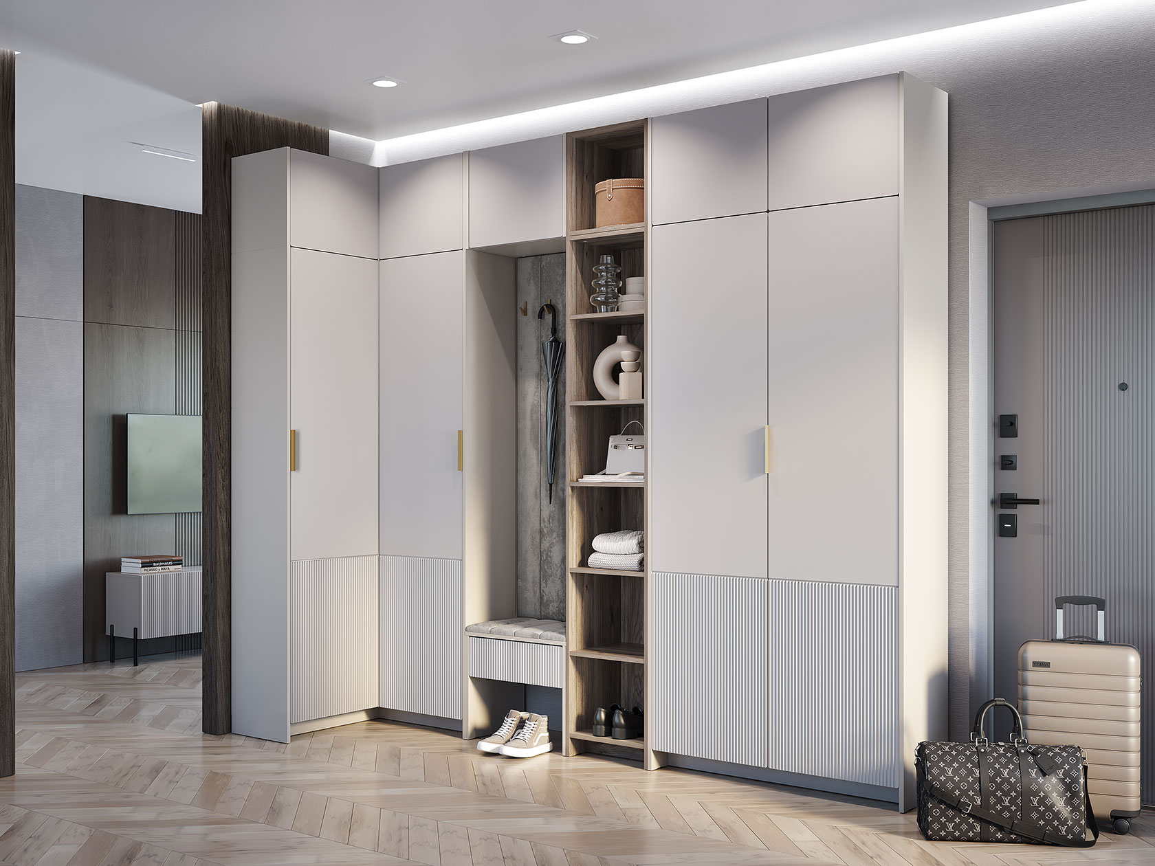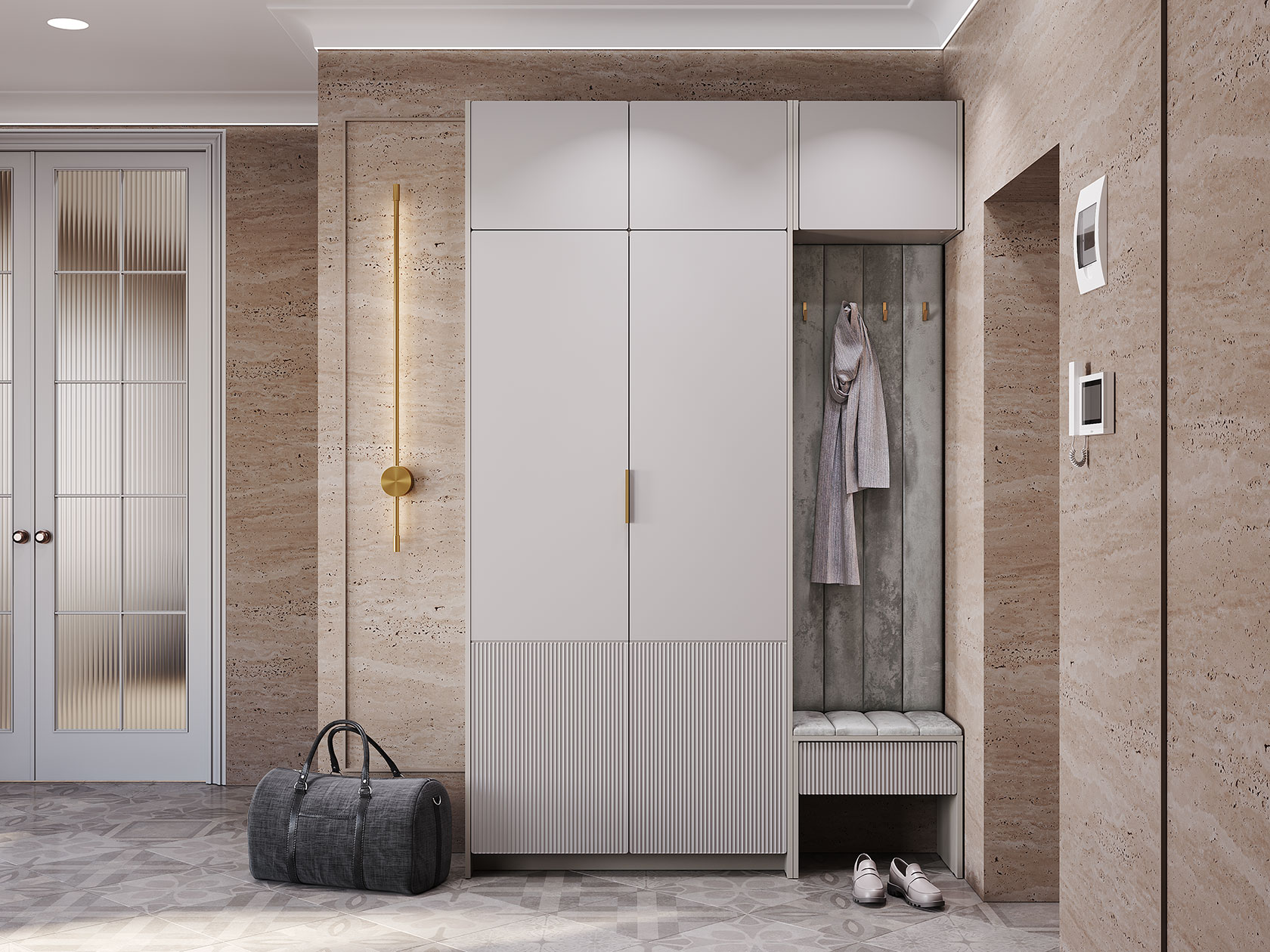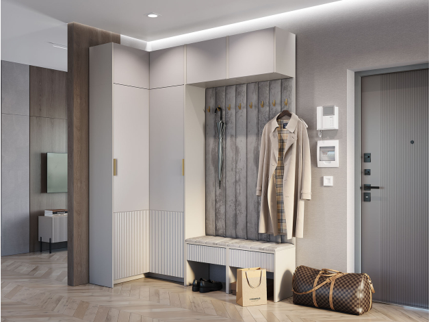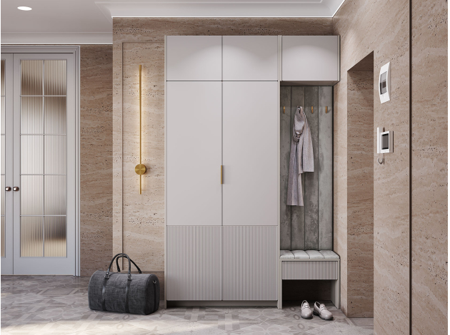Навесной шкаф Пандора Мини организует дополнительное место для хранения без значительных затрат пространства. За распашной дверцей находится просторное отделение для объемных коробок, больших сумок и головных уборов. Гладкая матовая поверхность создает гармоничную обстановку, а отсутствие лицевой фурнитуры подчеркивает лаконичность модели.