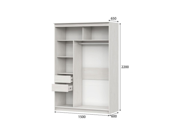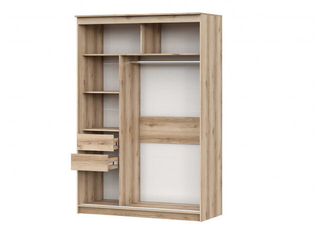 Шкаф-купе Колор представляет собой функциональную систему хранения повседневных и сезонных вещей. Для аккуратного развешивания предметов гардероба предусмотрена вместительная ниша со штангой для вешалок, а для постельного белья и одежды из немнущихся тканей имеется отделение с полками. Небольшие выдвижные ящики будут удобны для аксессуаров и других вещей.
