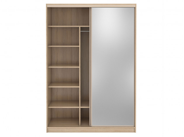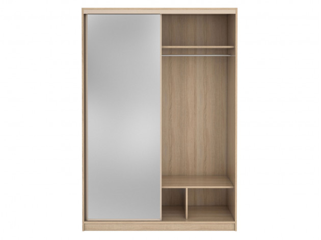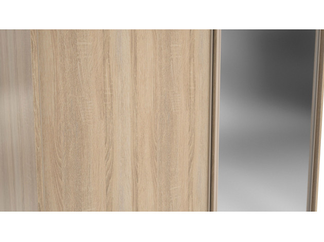 Большой двустворчатый шкаф-купе Домашний 202 с зеркалом поможет с удобством хранить самые разные вещи. Модель предусматривает широкую продольную штангу и множество различных полочек, это позволить аккуратно хранить сложенные вещи, платья и костюмы, коробки с обувью и множество других предметов гардероба.