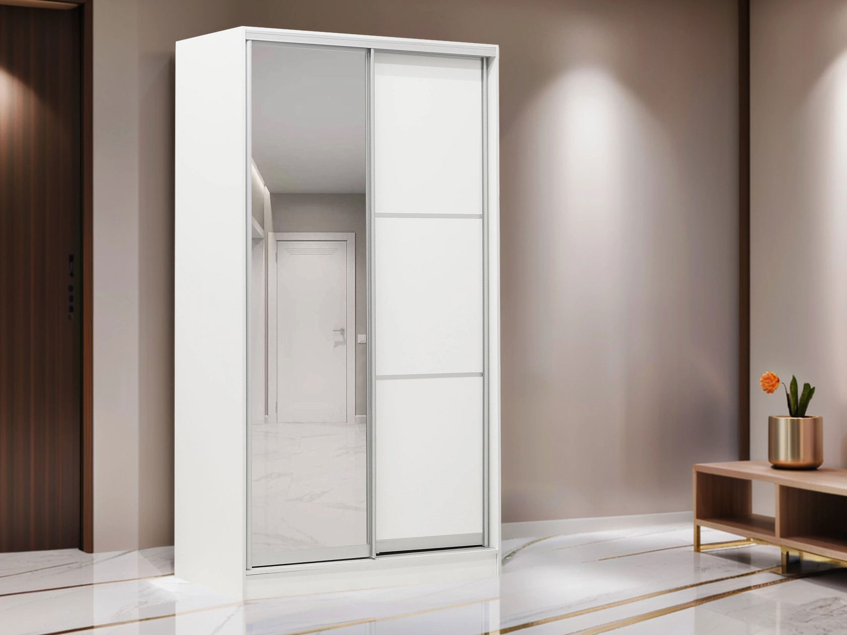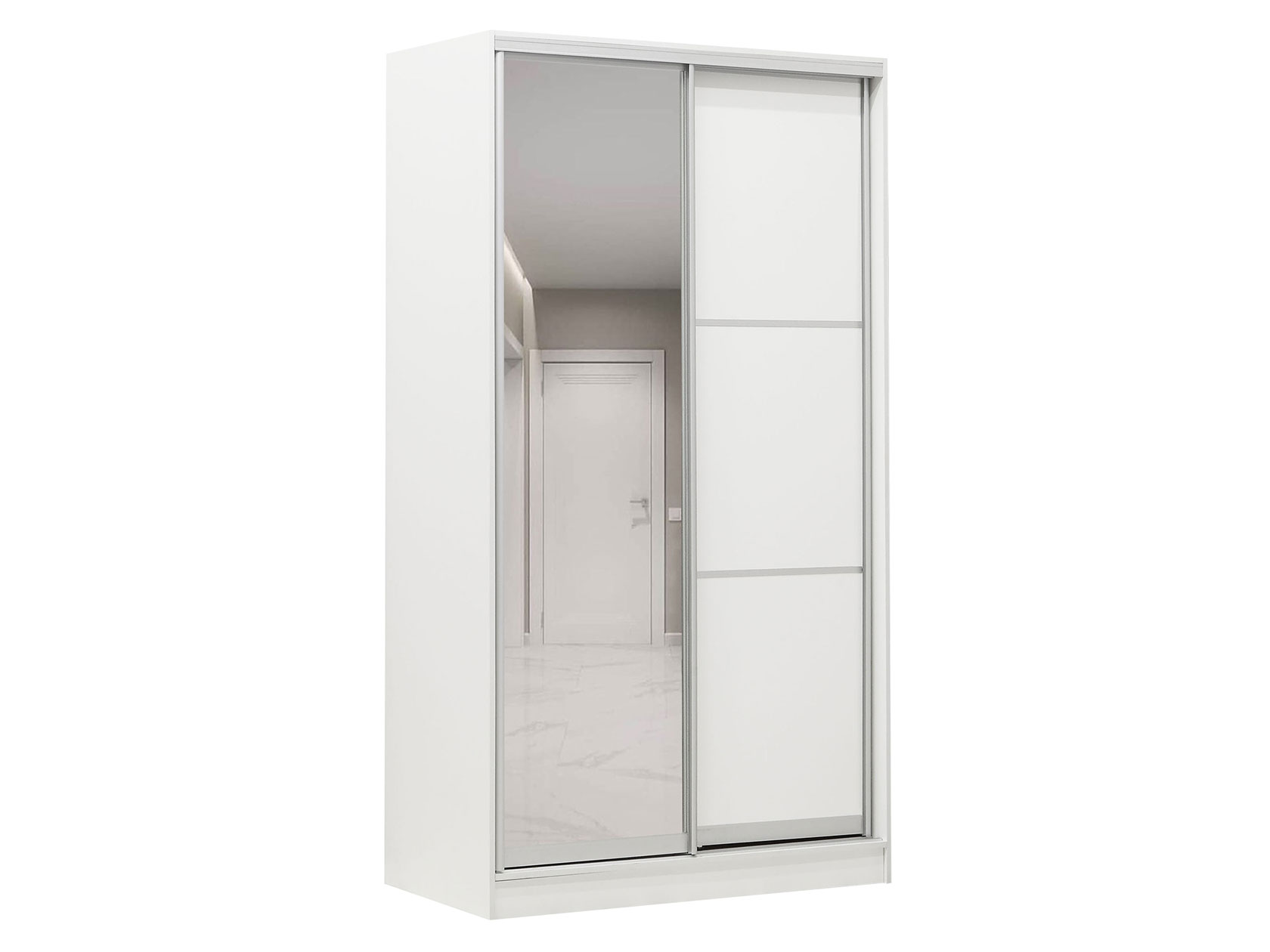 Шкаф-купе Элегия Белый жемчуг / Белый жемчуг / Зеркало 121 см