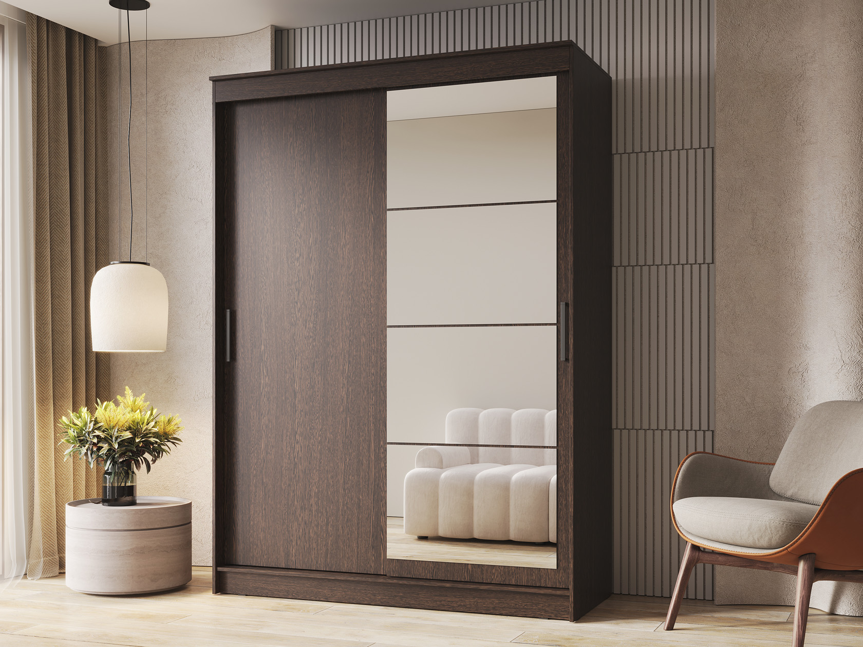 Шкаф-купе Гранд с глухой дверью и зеркалом Дуб Венге / Дуб Венге / Зеркало 160 см