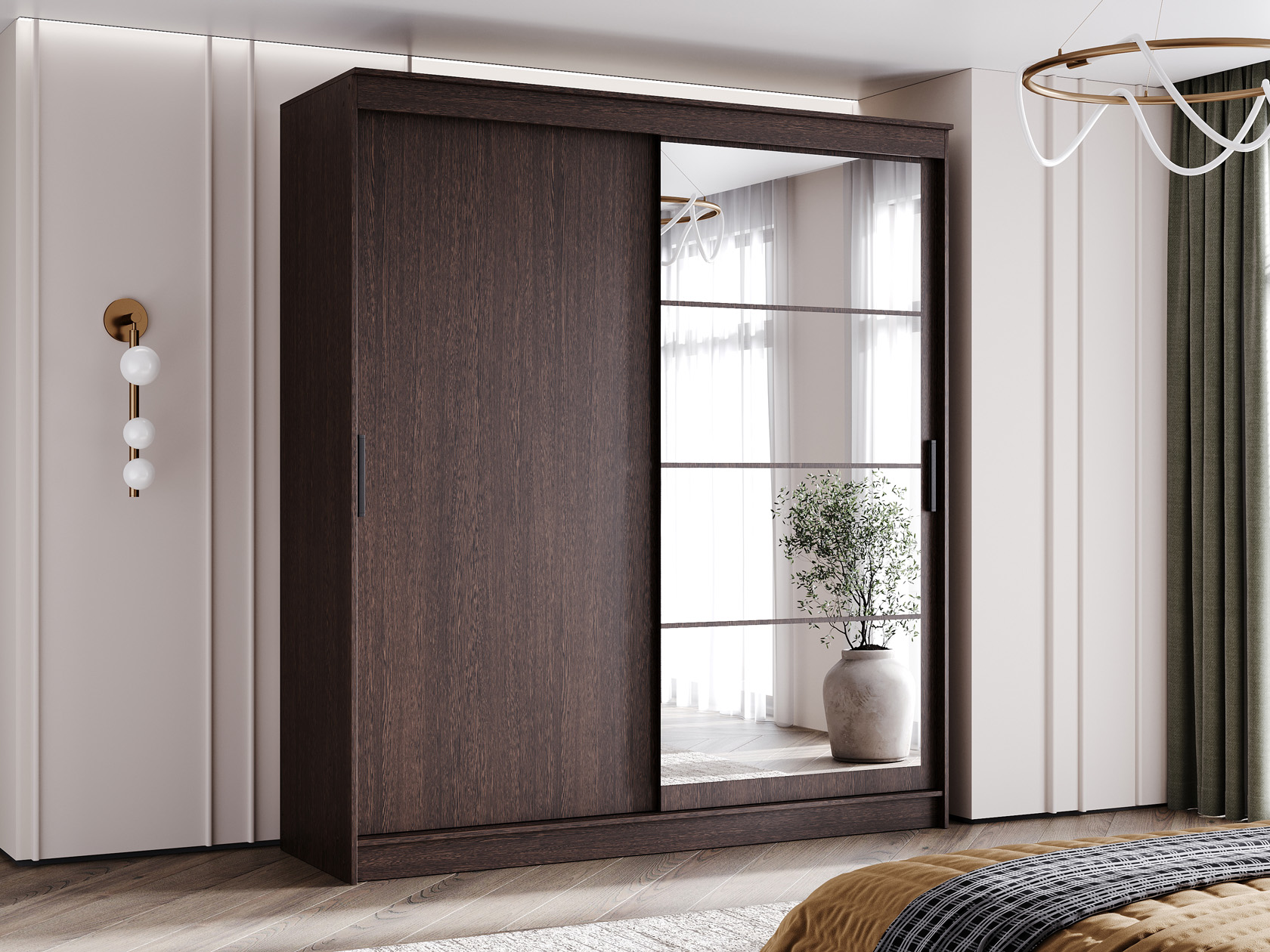 Шкаф-купе Гранд с глухой дверью и зеркалом Дуб Венге / Дуб Венге / Зеркало 200 см