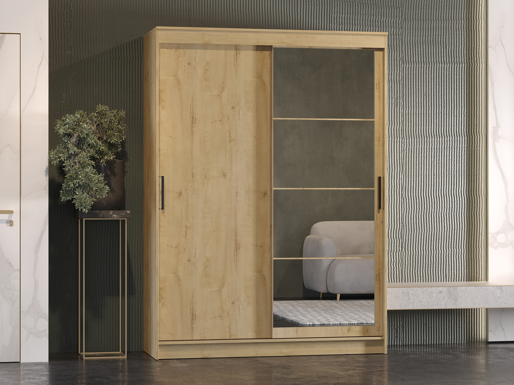 Шкаф-купе Гранд с глухой дверью и зеркалом Дуб Вотан / Дуб Вотан / Зеркало 160 см