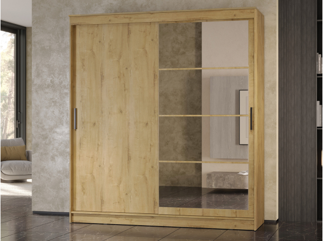 Шкаф-купе Гранд с глухой дверью и зеркалом удачно дополнит интерьер и расширит систему хранения предметов гардероба. Внутреннее наполнение представлено отделением со штангой и удобными полками. Модель оснащена направляющими, которые обеспечивают мягкое и беззвучное скольжение дверей. Гладкий матовый фасад не создаст проблем в уходе, а зеркало в полный рост позволит оценить подобранный образ.