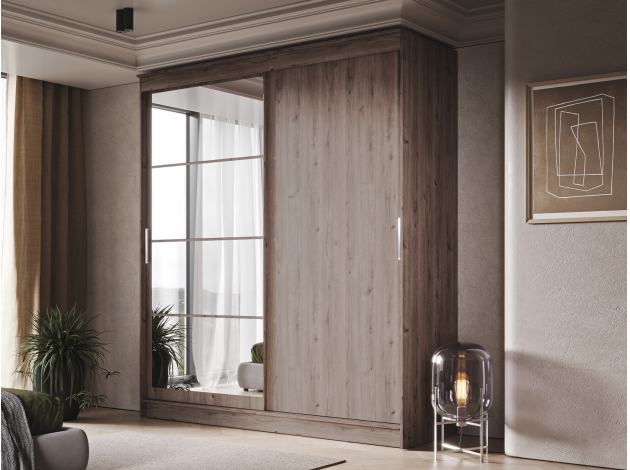 Шкаф-купе Гранд с глухой дверью и зеркалом Дуб горный / Дуб горный / Зеркало 200 см