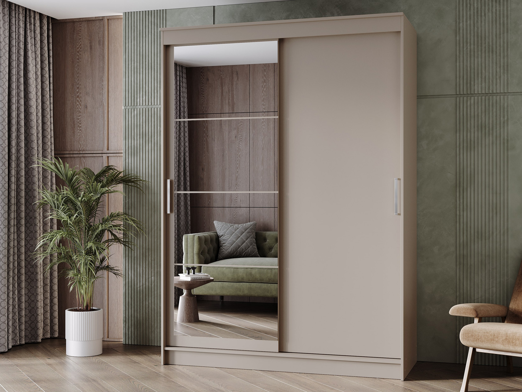 Шкаф-купе Гранд с глухой дверью и зеркалом Сатин / Сатин / Зеркало 160 см