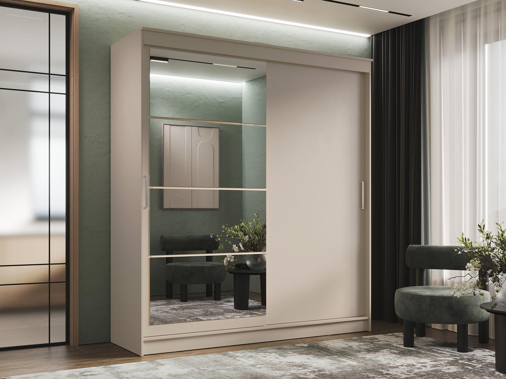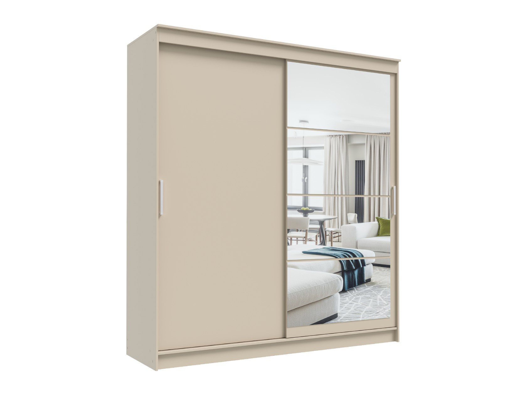 Шкаф-купе Гранд с глухой дверью и зеркалом Сатин / Сатин / Зеркало 200 см