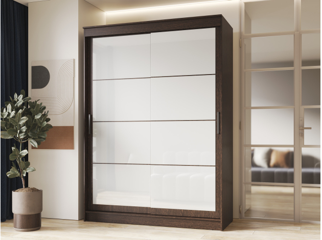 Шкаф-купе Гранд Лакобель белый поможет эффективно организовать пространство для хранения одежды, обуви и аксессуаров, а также станет гармоничным дополнением современного интерьера. Внутреннее наполнение поделено на отделения, одно из которых оснащено полками и выдвижными ящиками, а другое — продольной штангой для вешалок. Декор фасадов в виде белого лакобеля актуально выглядит и не создает трудностей в уходе.