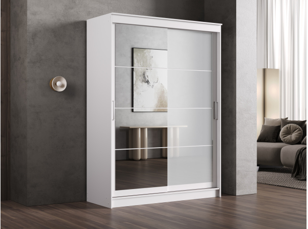 Шкаф-купе Гранд с зеркалом и лакобель белым — стильная и функциональная модель с продуманным наполнением. Для мнущихся вещей предусмотрена вместительная ниша со штангой, а для белья и другой повседневной одежды — отделение с полками. Небольшие выдвижные ящики удобны для аксессуаров и различных мелочей. С одной стороны дверца декорирована глянцевым лакобелем белого цвета, что создает необычный акцент интерьера.