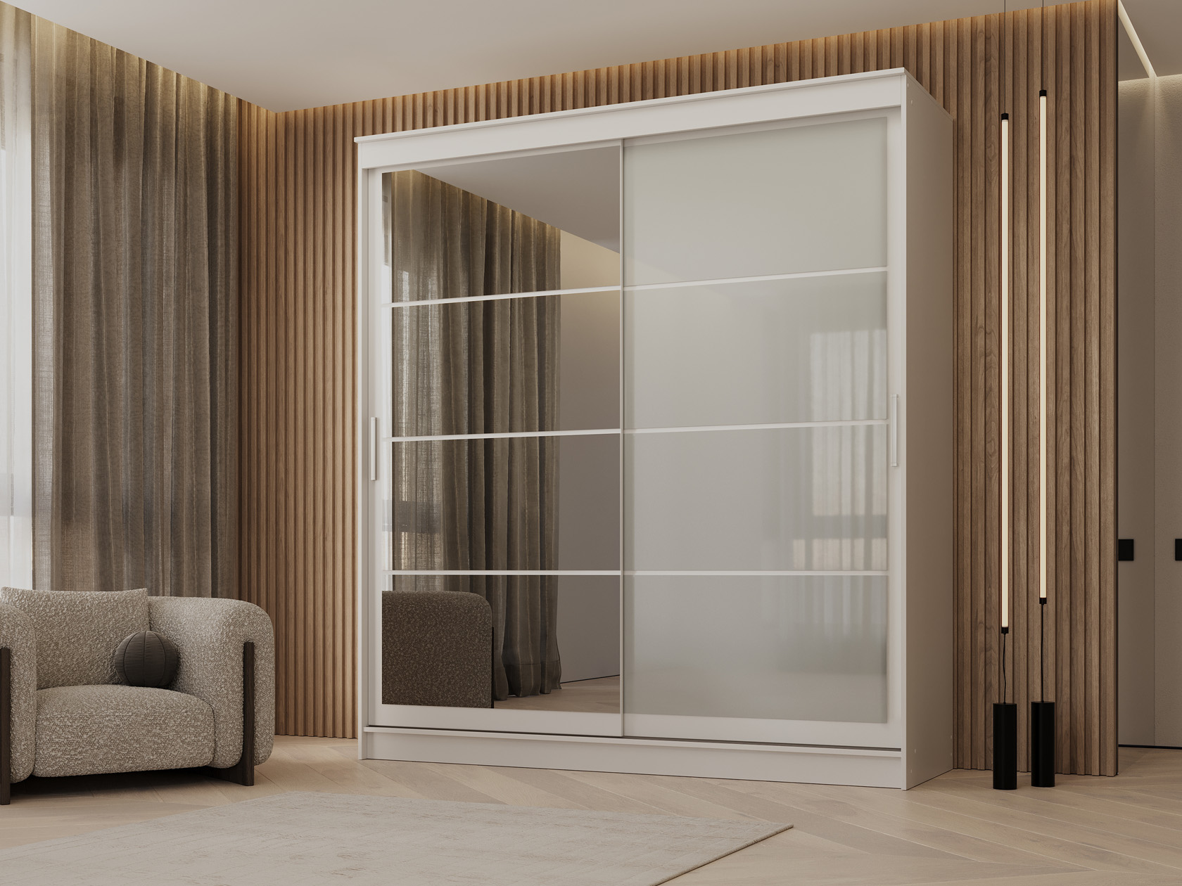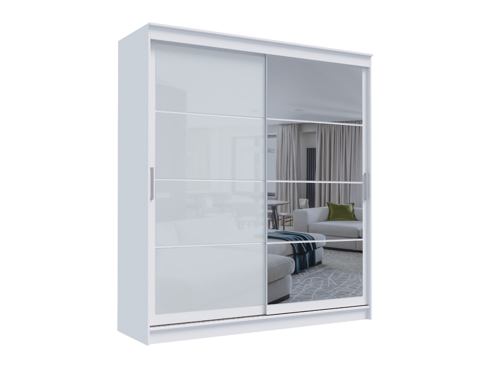 Шкаф-купе Гранд с зеркалом и лакобель белым — стильная и функциональная модель с продуманным наполнением. Для мнущихся вещей предусмотрена вместительная ниша со штангой, а для белья и другой повседневной одежды — отделение с полками. Небольшие выдвижные ящики удобны для аксессуаров и различных мелочей. С одной стороны дверца декорирована глянцевым лакобелем белого цвета, что создает необычный акцент интерьера.