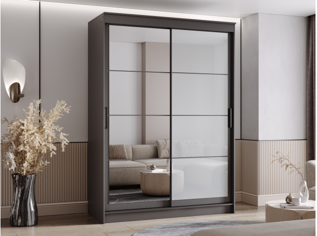 Шкаф-купе Гранд с зеркалом и лакобель белым Графит / Зеркало / Лакобель белый 160 см