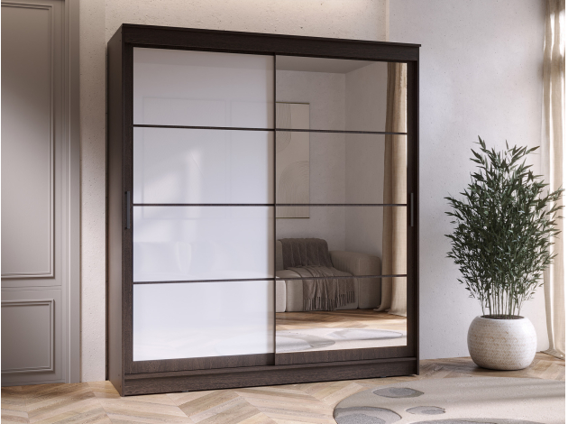 Шкаф-купе Гранд с зеркалом и лакобель белым Дуб Венге / Зеркало / Лакобель белый 200 см