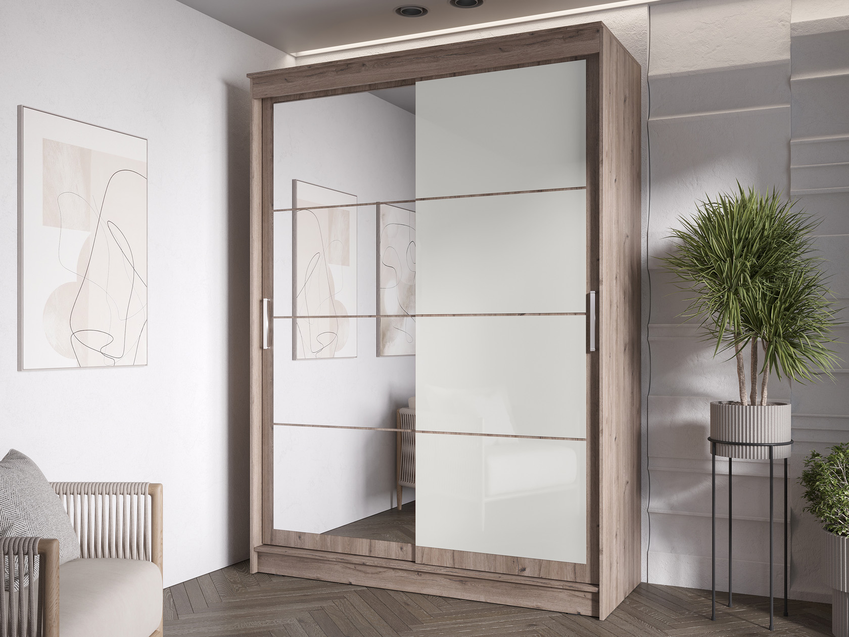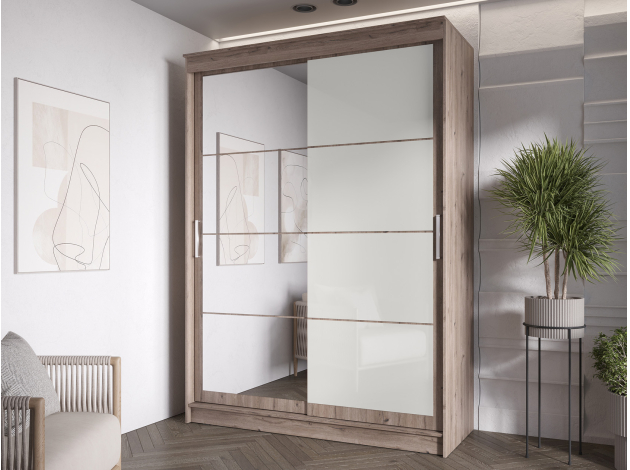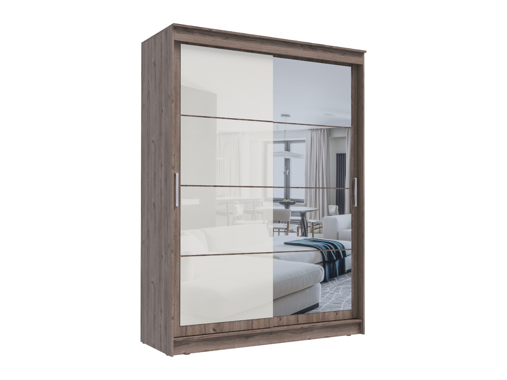 Шкаф-купе Гранд с зеркалом и лакобель белым Дуб горный / Зеркало / Лакобель белый 160 см