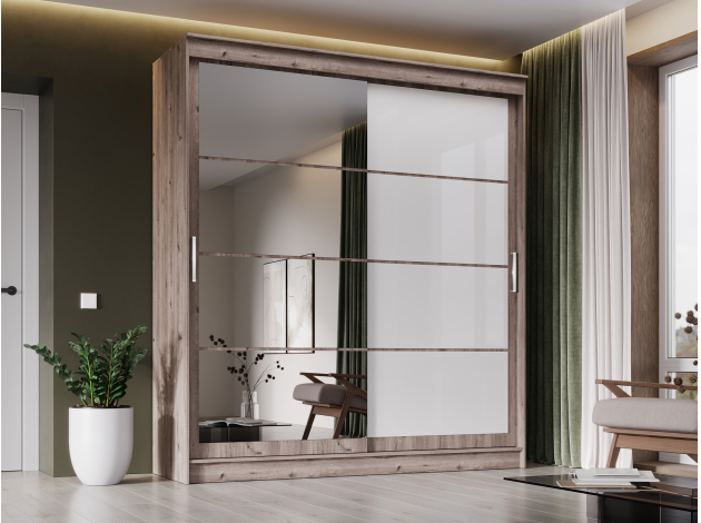 Шкаф-купе Гранд с зеркалом и лакобель белым Дуб горный / Зеркало / Лакобель белый 200 см