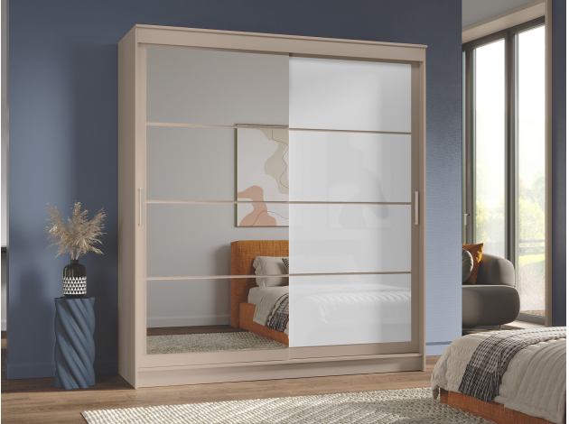 Шкаф-купе Гранд с зеркалом и лакобель белым Сатин / Зеркало / Лакобель белый 200 см