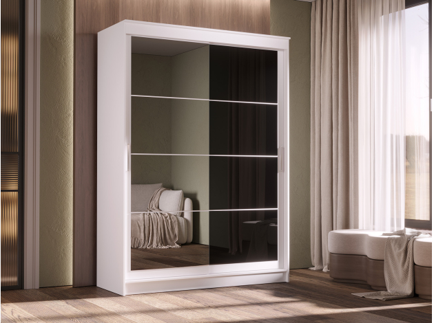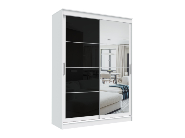 Шкаф-купе Гранд с зеркалом и лакобель черным Белый / Зеркало / Лакобель черный 160 см