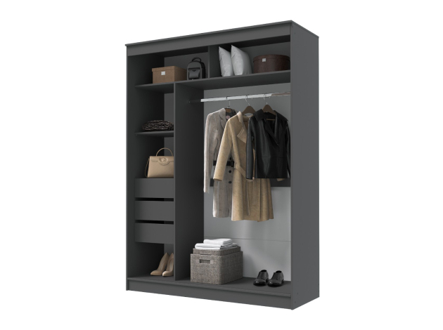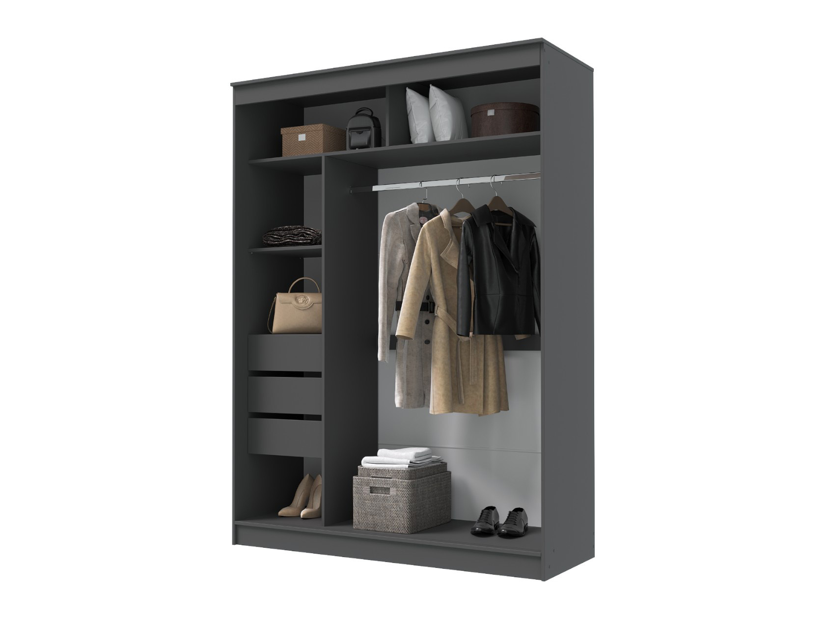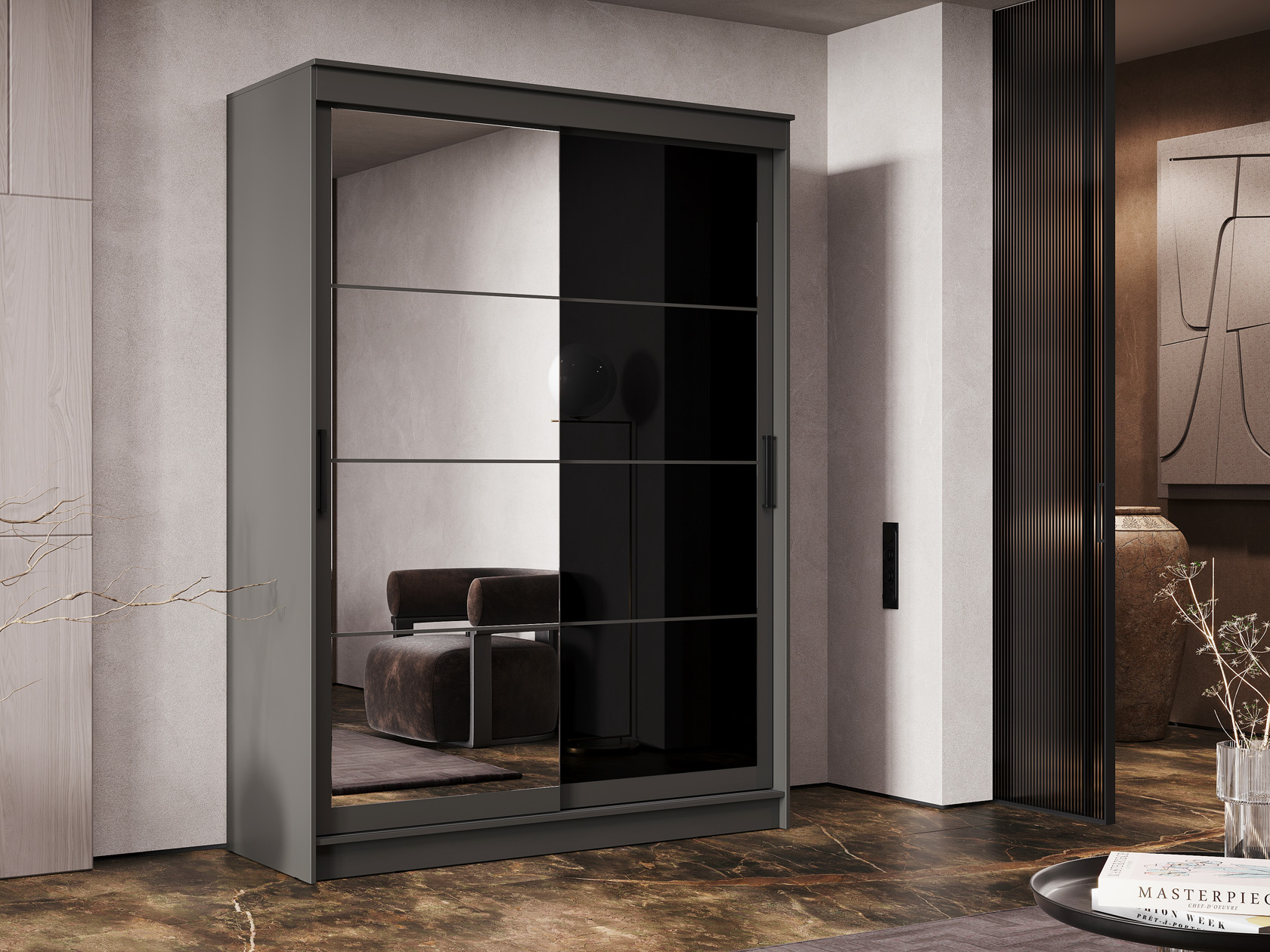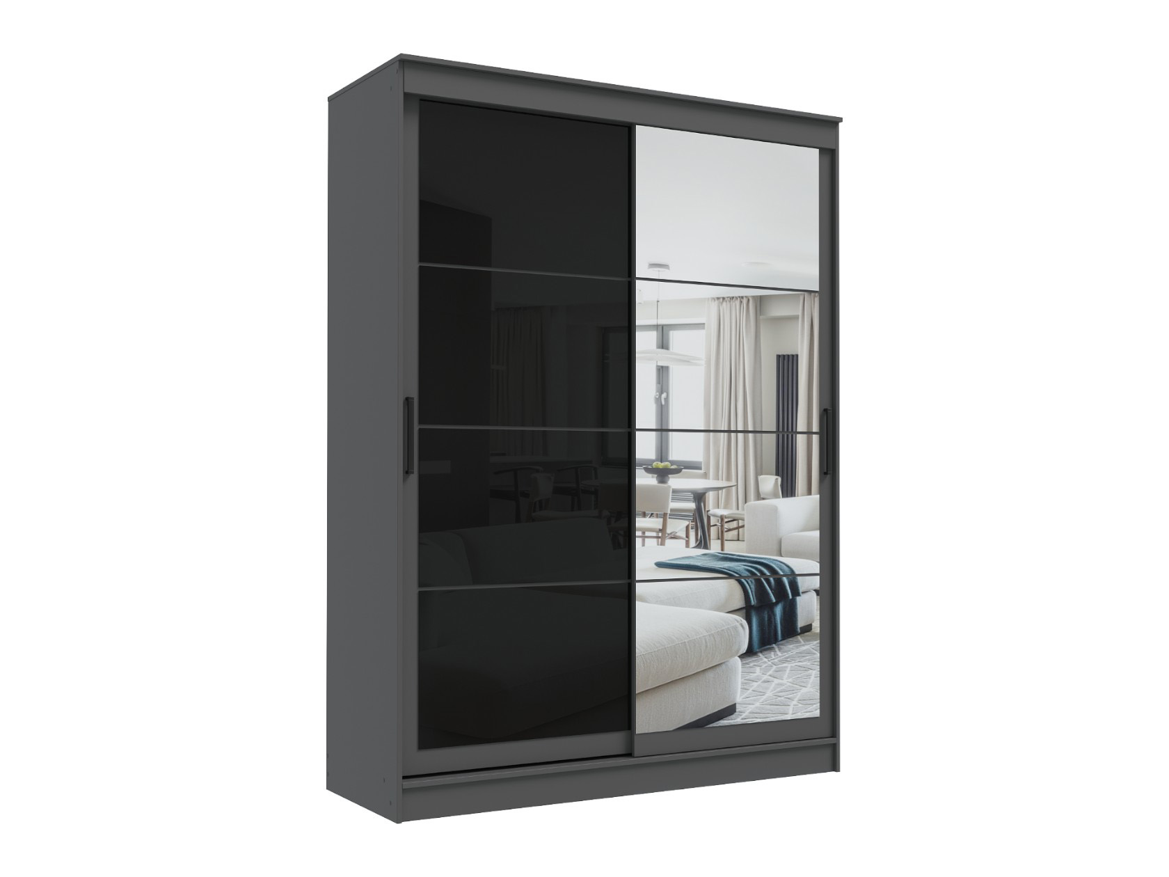 Шкаф-купе Гранд с зеркалом и лакобель черным Графит / Зеркало / Лакобель черный 160 см