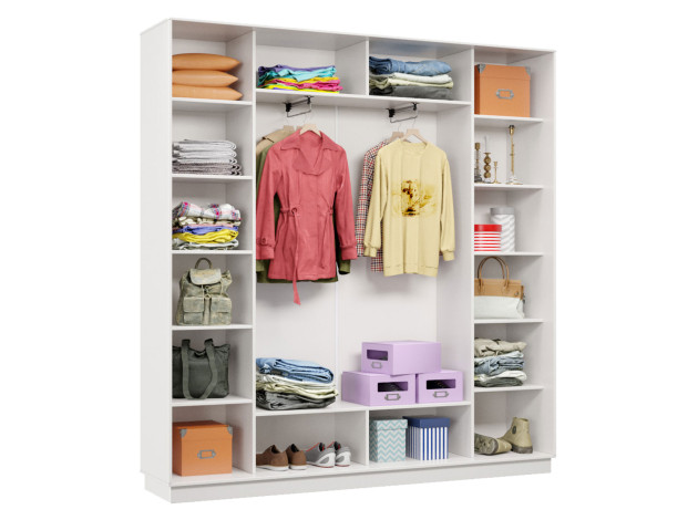 • Вместительный шкаф-купе Маршал Лайт станет основой системы хранения в спальне, прихожей или гостиной. Благодаря штангам можно аккуратно развесить одежду любой длины. Для трикотажа, обуви и аксессуаров предусмотрено множество полок по бокам и в центральной части модели.