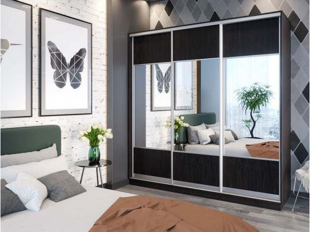 Шкаф-купе Маршал Лайт Венге / Зеркало / Серебро, алюминий 210 см 240 см 45 см