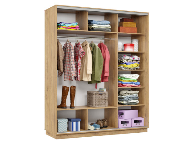 • Вместительный шкаф-купе Маршал Лайт станет основой системы хранения в спальне, прихожей или гостиной. Благодаря штангам можно аккуратно развесить одежду любой длины. Для трикотажа, обуви и аксессуаров предусмотрено множество полок по бокам и в центральной части модели.