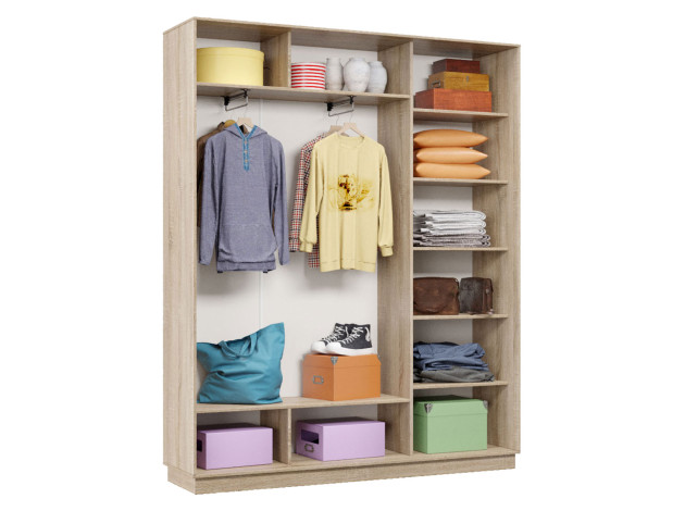 • Вместительный шкаф-купе Маршал Лайт станет основой системы хранения в спальне, прихожей или гостиной. Благодаря штангам можно аккуратно развесить одежду любой длины. Для трикотажа, обуви и аксессуаров предусмотрено множество полок по бокам и в центральной части модели.