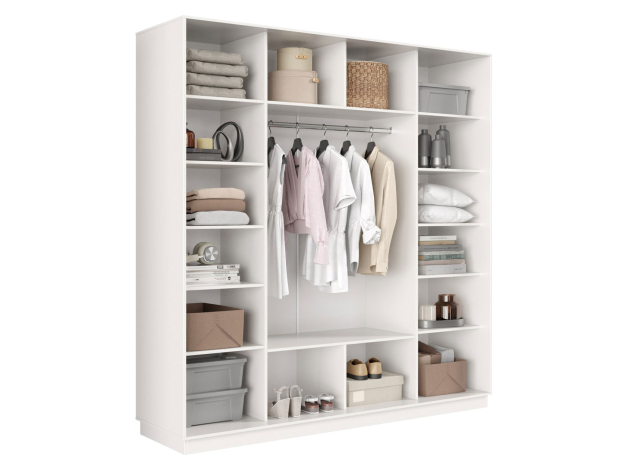 • Благодаря вместительности и грамотному наполнению шкаф-купе Маршал Лайт станет практичным дополнением современного интерьера. Лаконичный дизайн с гладкими фасадами и отсутствием лицевой фурнитуры легко интегрировать в разные стили меблировки. Внутри расположена большая секция со штангой для плечиков, а также ряд полок для домашнего текстиля и аксессуаров. Дверцы плавно и бесшумно передвигаются по однополосному треку, обеспечивая быстрый доступ к нужному отделению.