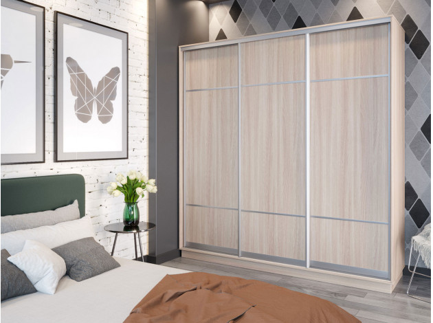 Шкаф-купе Маршал Лайт Ясень шимо светлый / Серебро, алюминий 240 см 220 см 45 см