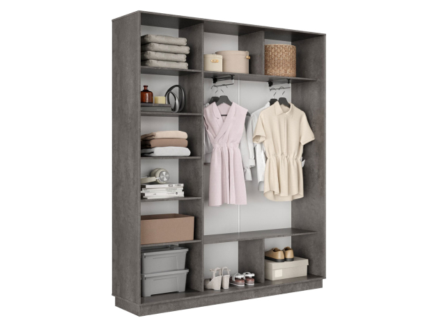 • Благодаря вместительности и грамотному наполнению шкаф-купе Маршал Лайт станет практичным дополнением современного интерьера. Лаконичный дизайн с гладкими фасадами и отсутствием лицевой фурнитуры легко интегрировать в разные стили меблировки. Внутри расположена большая секция со штангой для плечиков, а также ряд полок для домашнего текстиля и аксессуаров. Дверцы плавно и бесшумно передвигаются по однополосному треку, обеспечивая быстрый доступ к нужному отделению.
