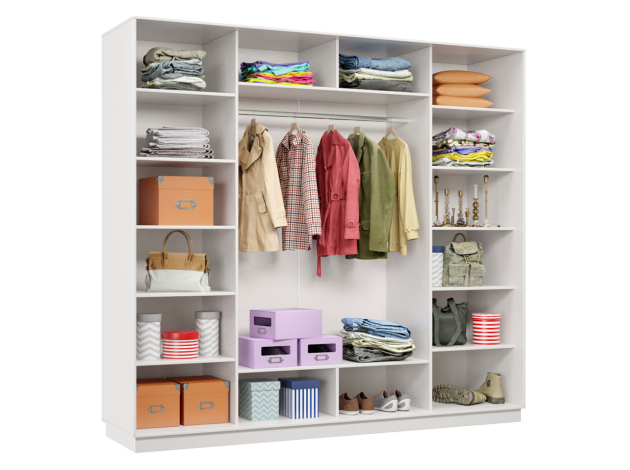 • Благодаря вместительности и грамотному наполнению шкаф-купе Маршал Лайт станет практичным дополнением современного интерьера. Лаконичный дизайн с гладкими фасадами и отсутствием лицевой фурнитуры легко интегрировать в разные стили меблировки. Внутри расположена большая секция со штангой для плечиков, а также ряд полок для домашнего текстиля и аксессуаров. Дверцы плавно и бесшумно передвигаются по однополосному треку, обеспечивая быстрый доступ к нужному отделению.