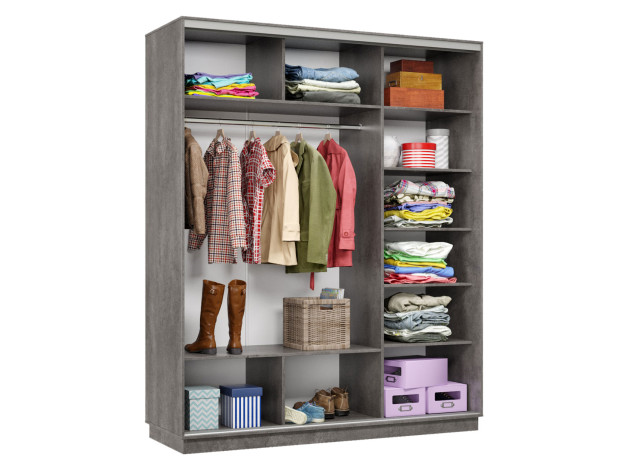 Шкаф-купе Маршал Лайт Бетон / Зеркало / Серебро, алюминий 180 см 240 см 60 см