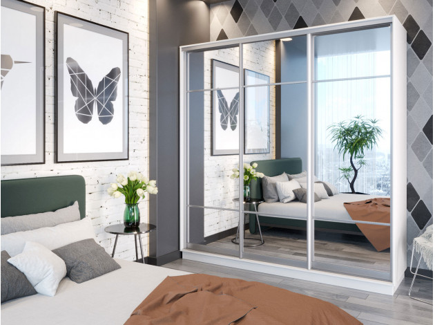 Шкаф-купе Маршал Лайт Белый / Зеркало / Серебро, алюминий 240 см 220 см 60 см