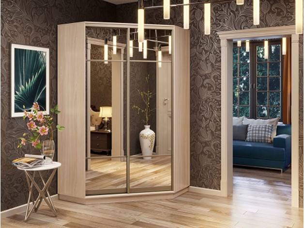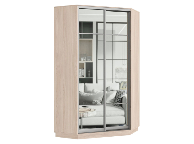 Шкаф-купе Маршал Лайт Ясень шимо светлый / Зеркало / Серебро, алюминий