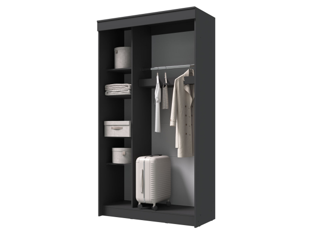 Шкаф-купе Эко с зеркалом позволит распределить все предметы гардероба благодаря функциональному и удобному наполнению. Просторное отделение со штангой поможет разместить на плечиках одежду любой длины. Секция с полками идеально подходит для сложенных вещей: джинсов, футболок, домашнего текстиля. Комплектация с зеркалом визуально расширяет пространство, а практичные фасады не вызывают сложностей с уходом.