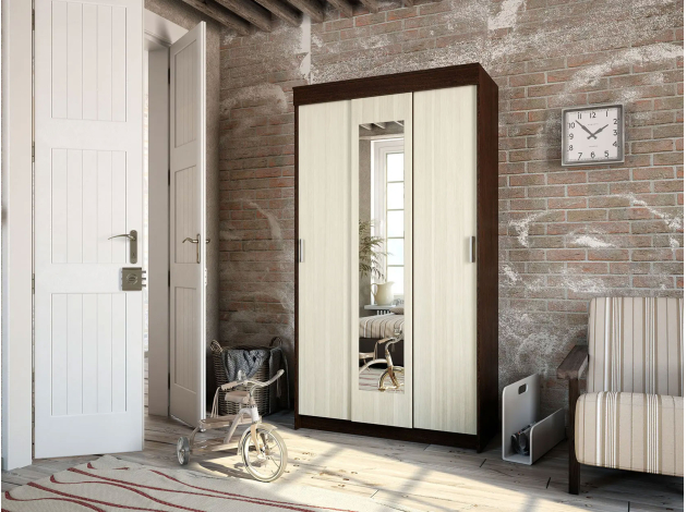 Шкаф-купе Эко с зеркалом позволит распределить все предметы гардероба благодаря функциональному и удобному наполнению. Просторное отделение со штангой поможет разместить на плечиках одежду любой длины. Секция с полками идеально подходит для сложенных вещей: джинсов, футболок, домашнего текстиля. Комплектация с зеркалом визуально расширяет пространство, а практичные фасады не вызывают сложностей с уходом.