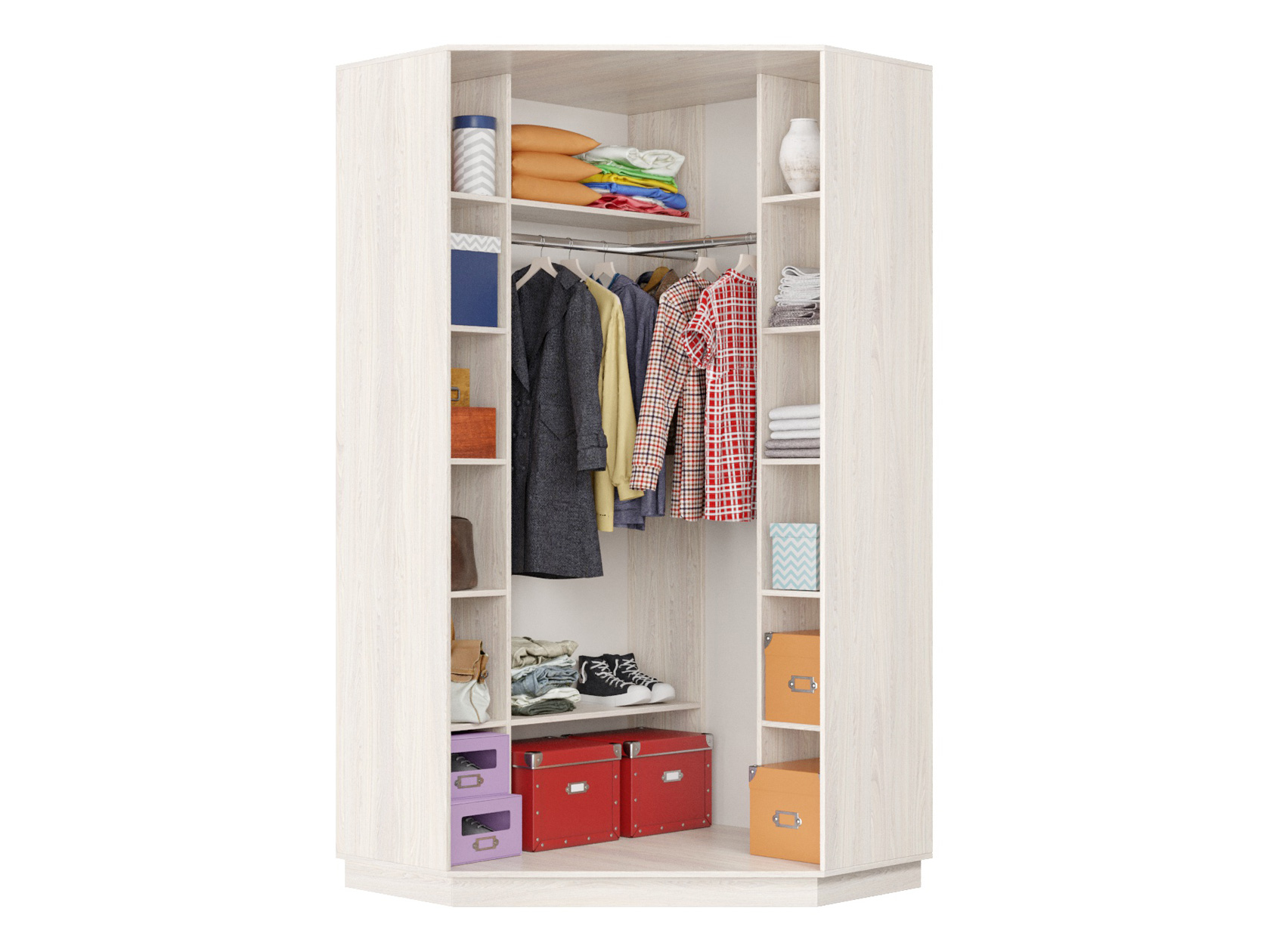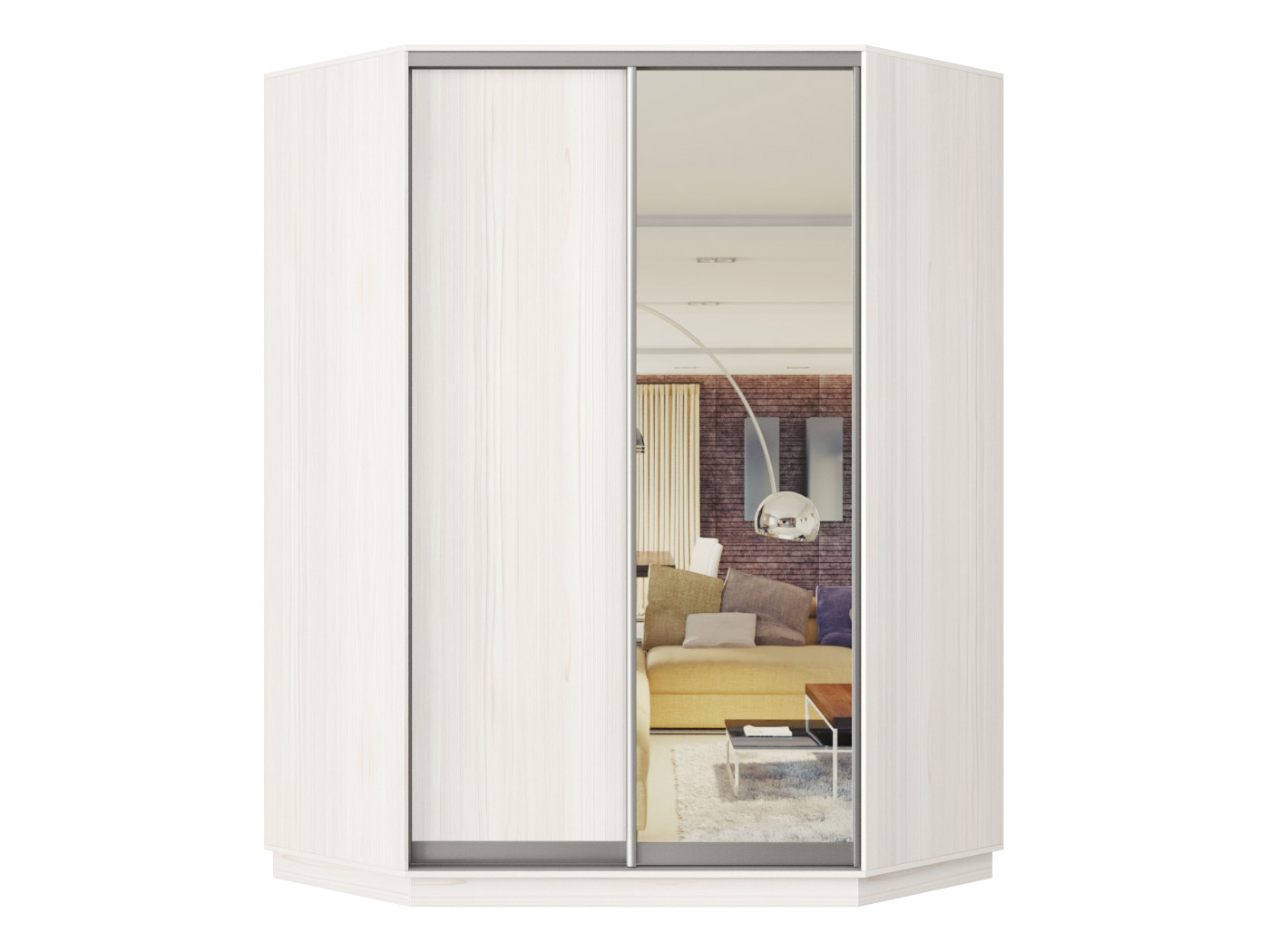 Угловой шкаф-купе Маршал Лайт Ясень Анкор светлый / Зеркало / Серебро, алюминий