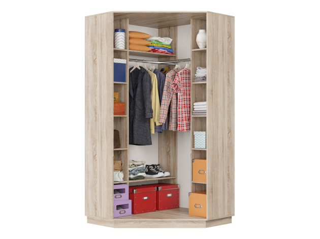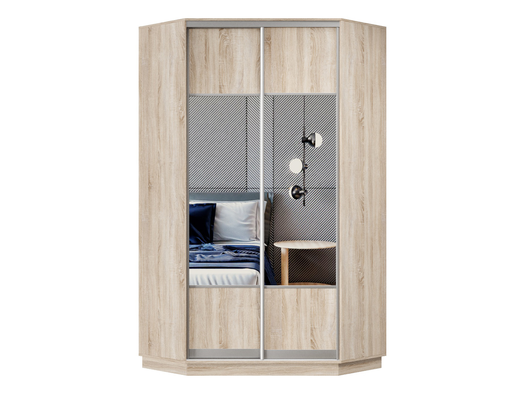 Угловой шкаф-купе с зеркалами Маршал Лайт Дуб Сонома / Зеркало / Серебро, алюминий