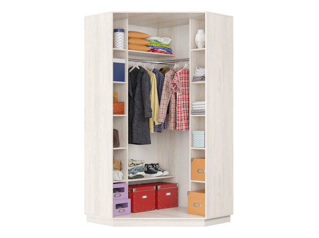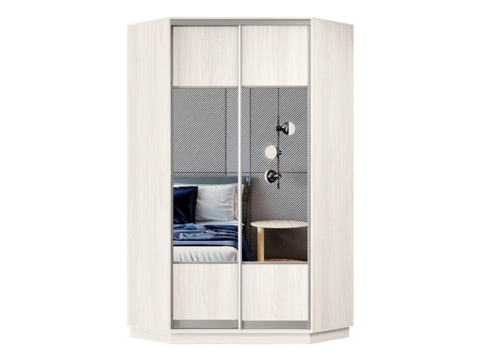 Угловой шкаф-купе с зеркалами Маршал Лайт Ясень Анкор светлый / Зеркало / Серебро, алюминий