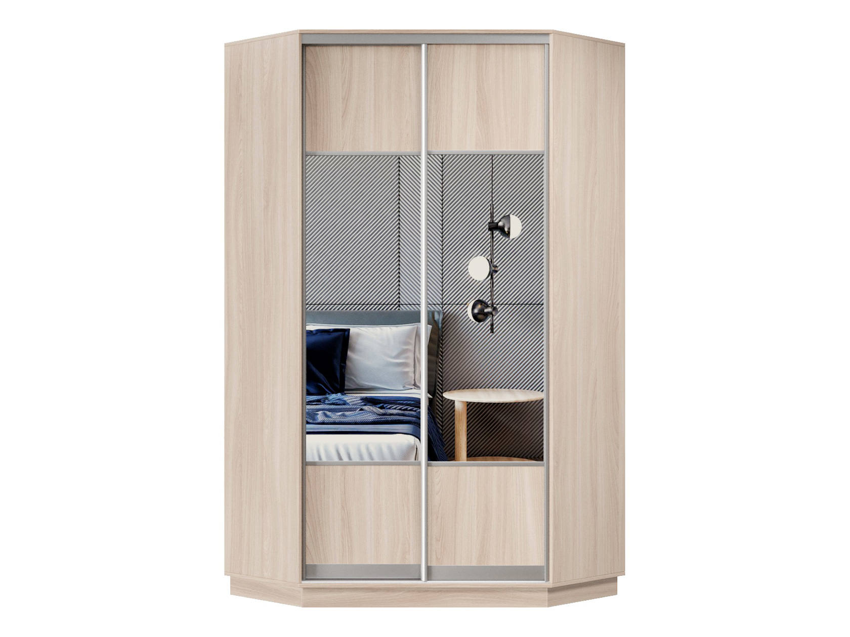 Угловой шкаф-купе с зеркалами Маршал Лайт Ясень Шимо светлый / Зеркало / Серебро, алюминий