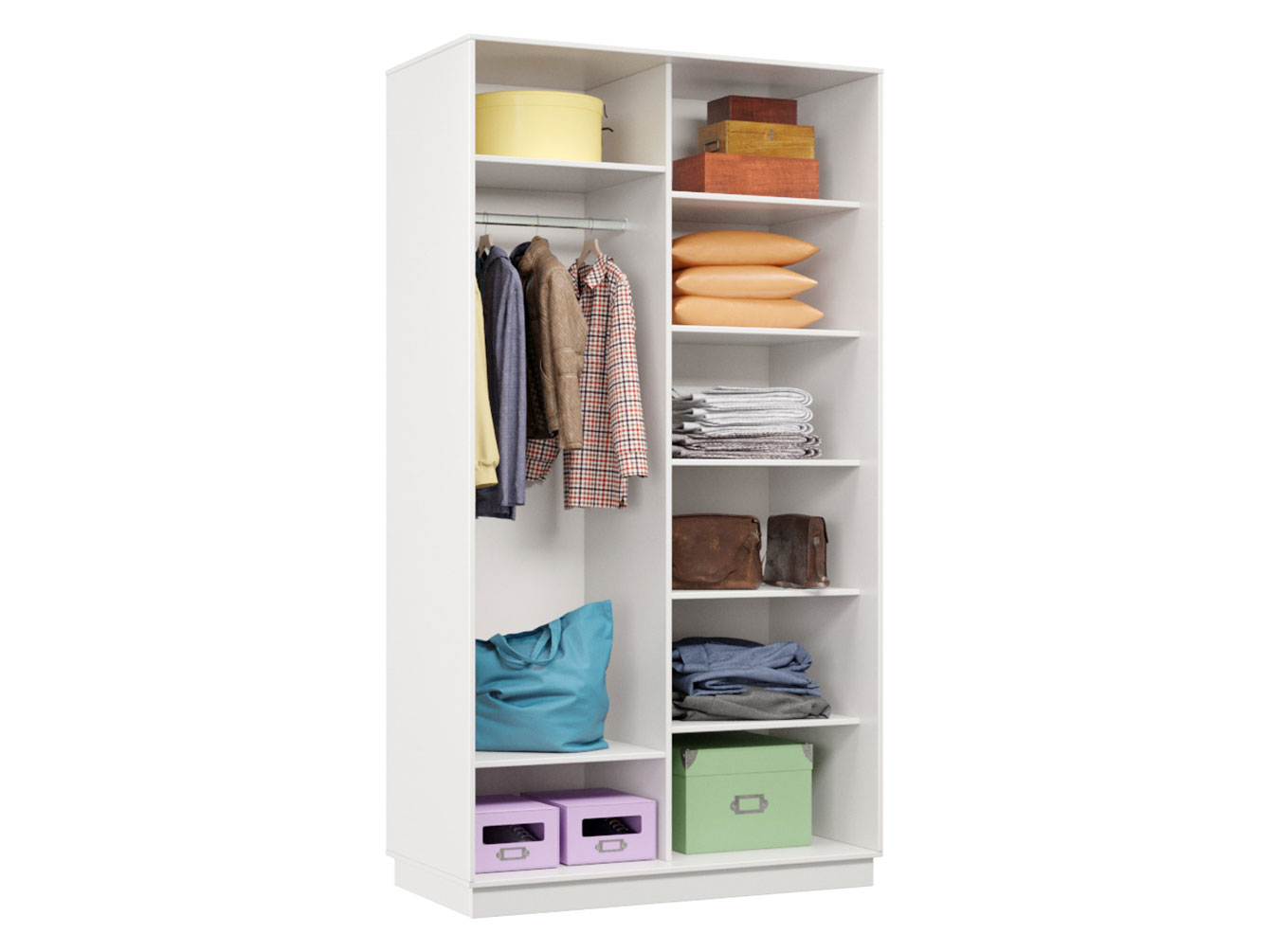 • Шкаф-купе Маршал Лайт 02 обеспечит порядок в гардеробной благодаря компактному размещению одежды, обуви и аксессуаров. Практичное внутреннее наполнение позаботится о рациональном хранении костюмов из деликатных тканей, а также поможет распределить коробки с обувью и сезонные вещи.