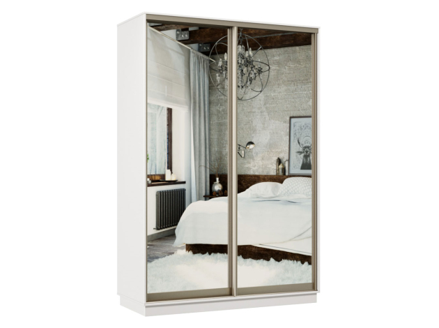 Шкаф-купе Маршал Лайт 01 Белый / Зеркало / Шампань, алюминий 220 см 150 см 45 см С двумя выдвижными штангами