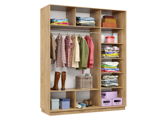 • Шкаф-купе Маршал станет вместительным хранилищем предметов гардероба в современном интерьере. Двери открываются плавно и бесшумно благодаря системе направляющих. Фасады дополнены зеркалами в полный рост, которые позволят в деталях оценить подобранный образ и визуально расширят пространство.