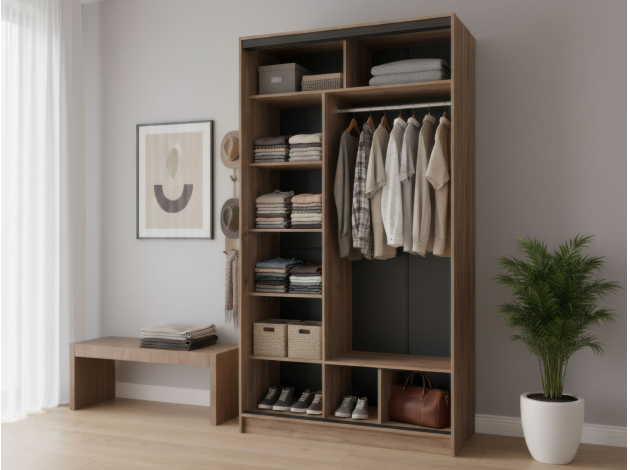 Шкаф-купе Оптима 2 двери — детально продуманное решение для хранения любых необходимых вещей. Наполнение позволяет удобно распределить одежду, белье и аксессуары. Полки со скрытыми держателями можно регулировать по высоте, адаптируя модель под индивидуальные потребности. Минималистичные матовые фасады непритязательны в уходе. Специальный уплотнитель защищает содержимое от пыли и обеспечивает бесшумное закрывание дверей, что особенно важно в спальне или детской.