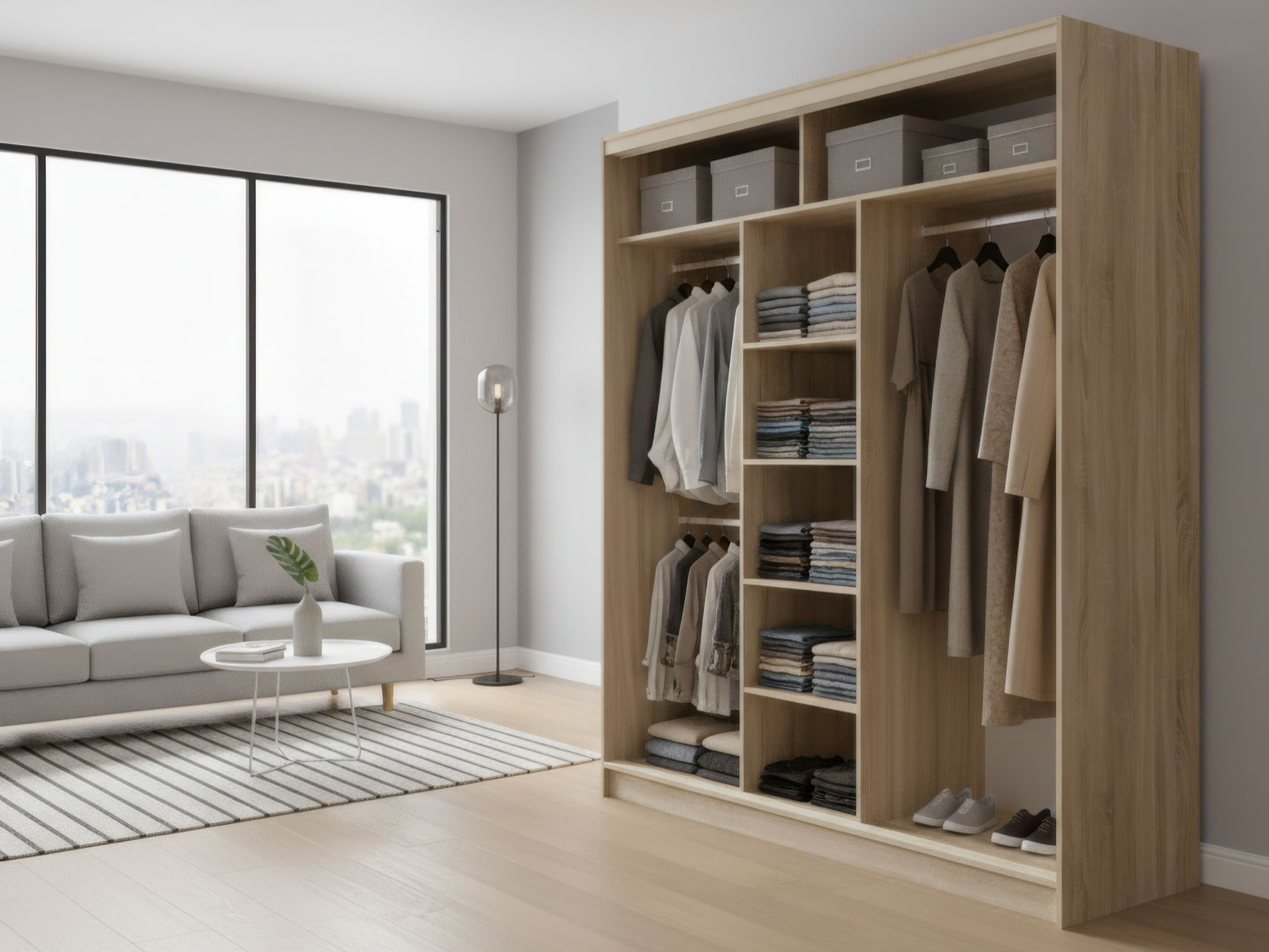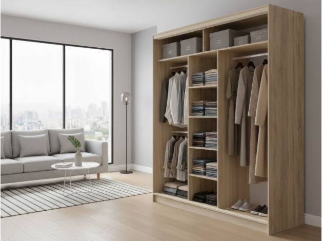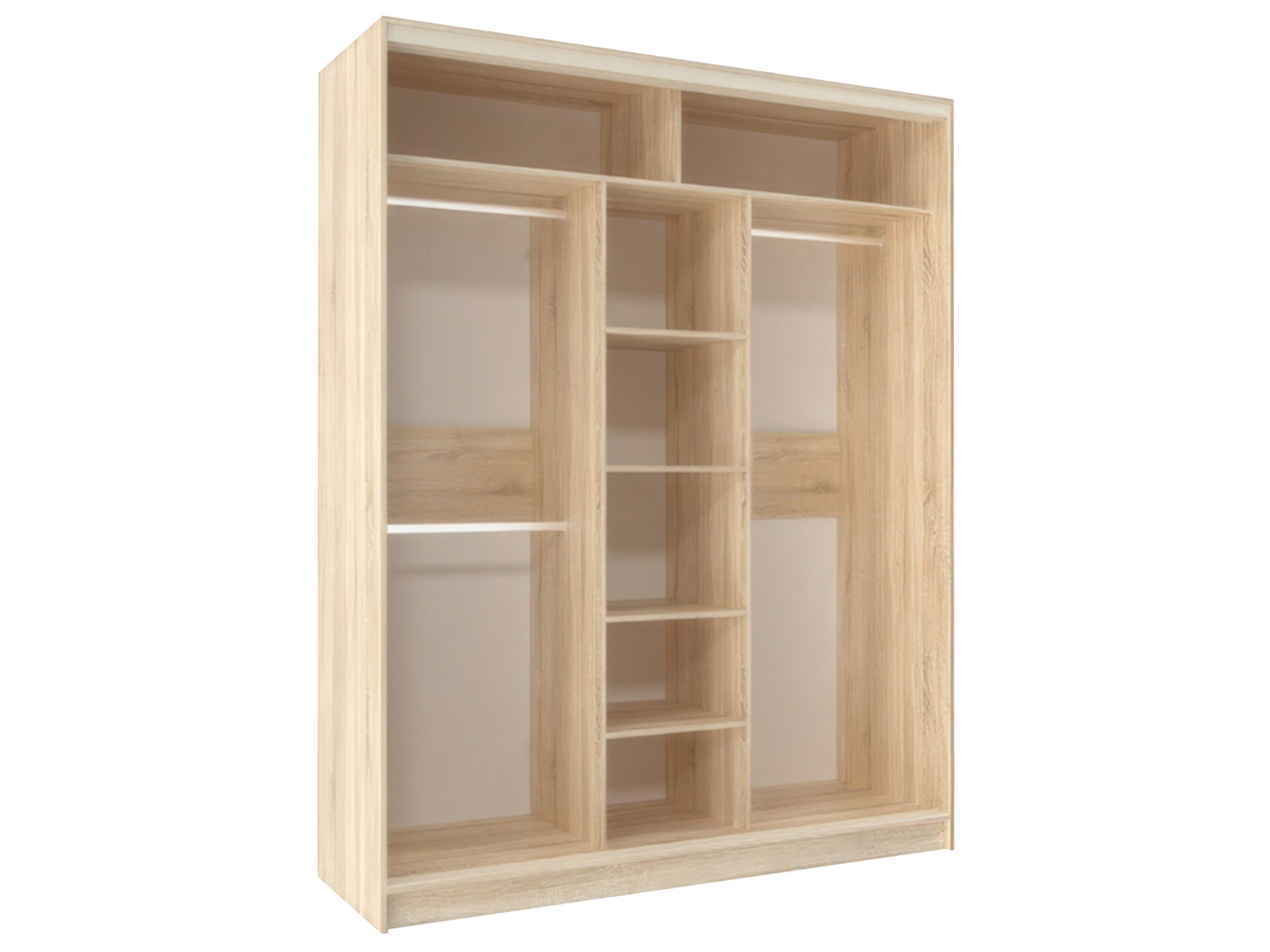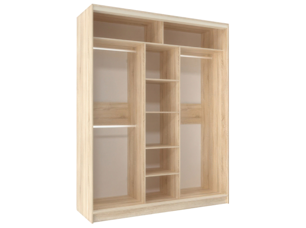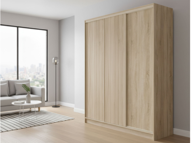 Шкаф-купе Оптима 3 двери — вместительная модель для хранения гардероба. Комбинированное наполнение включает отделения со штангами на разных уровнях, ряд полок, которые регулируются по высоте, и антресольные секции для сезонных вещей. Специальный уплотнитель защищает содержимое от пыли и обеспечивает бесшумное закрывание дверей. Гладкие фасады с матовым покрытием практичны и нетребовательны в уходе.
