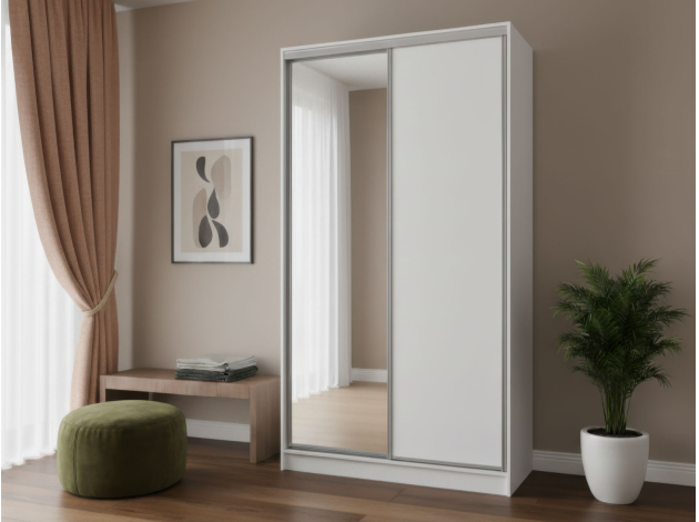 Шкаф-купе Оптима с зеркалом Белый / Зеркало 135 см